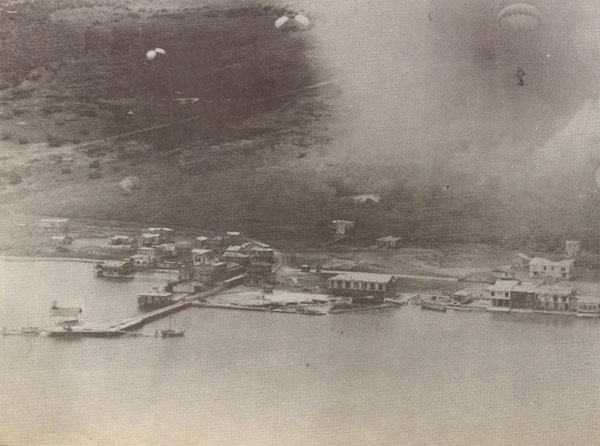 A las 17:45 de la tarde los tres valerosos soldados cayeron del cielo armados cada uno con dos pistolas, un cuchillo, mapas del lugar y una linterna. Se trataba de la primera acción de comandos aerotransportados del continente.