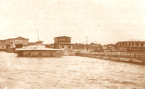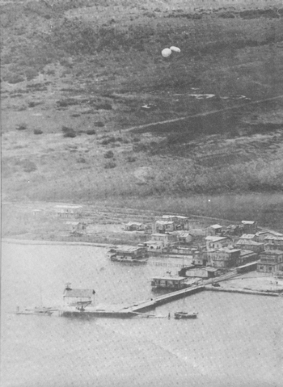 Foto del Puerto Bolívar completamente abandonado después de la captura por medio de paracaidistas del CAP - 31 de Julio de 1941. (Enciclopedia Aeronáutica del Perú, Tomo VI, Copyright By Instituto de Estudios Históricos y Aeroespaciales del Perú).