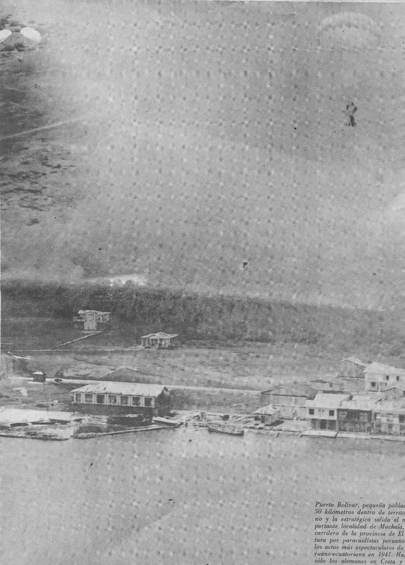 Fotografía histórica: 31 de julio de 1941. El asalto aerotransportado peruano sobre Puerto Bolivar (Ecuador), primero en toda América ejecutándose.