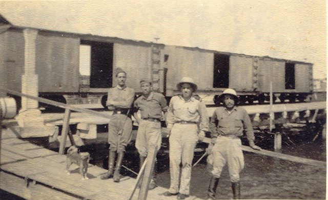 Fotografía de Puerto Bolívar en 1941 luego de su captura. Pueden verse claramente los vagones del ferrocarril en el muelle y que el enemigo ecuatoriano fue incapaz de arrojar al mar. Sobre esto, en la pagina Nº 20 del libro "Tragedia ecuatoriana y sus responsables" de 1945 de Julio Santamaría, se lee lo siguiente: "...y no había necesidad de usar la dinamita sino realizar lo que insinuó al Coronel Rodríguez, jefe de las fuerzas ecuatorianas, el mecánico Octavio Rojas: empujar al agua los carros del ferrocarril cargados de parque insinuación que rechazo ese jefe atolondrado...".