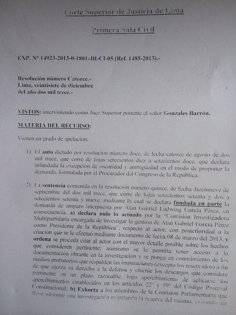 CORTE SUPERIOR ANULA INVESTIGACION SOBRE ALAN GARCIA
